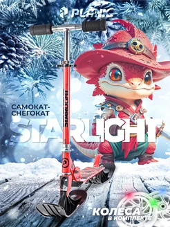 Детский снегокат самокат двухколесный + лыжи для детей
