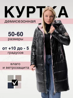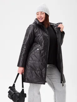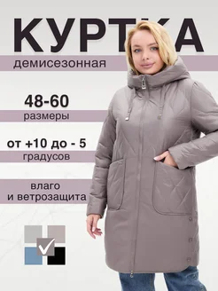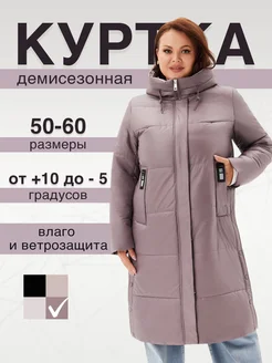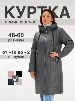 Куртка демисезонная удлиненная с капюшоном больших размеров