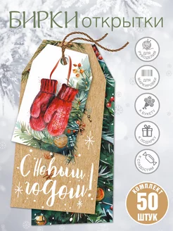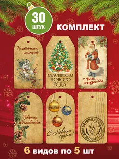 Бирки новогодние картонные набор бирок "Винтаж", 30 шт