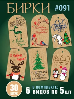 Новогодние бирки набор, Дизайнерские на крафт картоне 30 шт