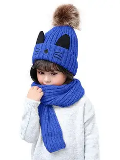 Шапка зимняя с ушками синяя