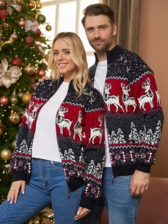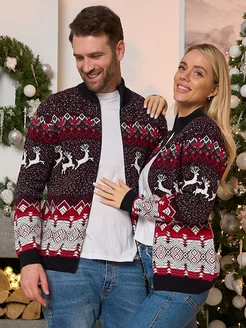 Кофта на молнии вязаная с оленями новогодняя Family Look