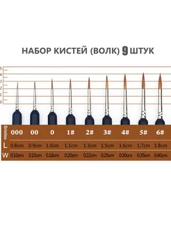 Набор кистей (волк), 9 шт. (№ 000, 00, 0, 1, 2, 3, 4, 5, 6)