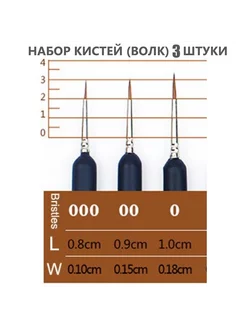 Набор кистей (волк), 3 шт. (№ 000, 00, 0)