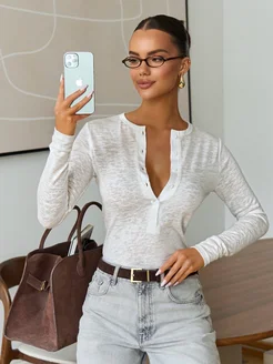 Лонгслив поло облегающий женский