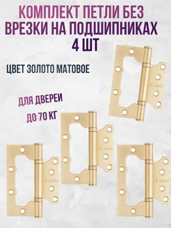Петли дверные 4 шт. бабочки без врезки матовое золото