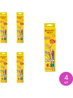 Карандаши цветные деревянные, мягкие, 6 цветов, 4 шт