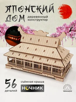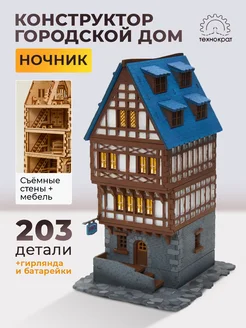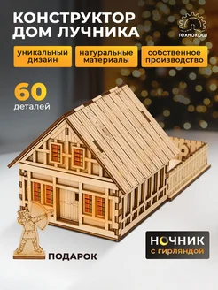 Деревянный конструктор ночник Домик сборная модель из дерева