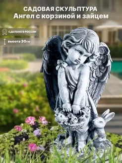Садовая фигура "Ангел-девочка с корзиной и зайцем" 30см