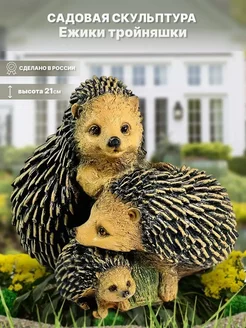 Садовая фигура "Ежики тройняшки", высота 21см. Полистоун