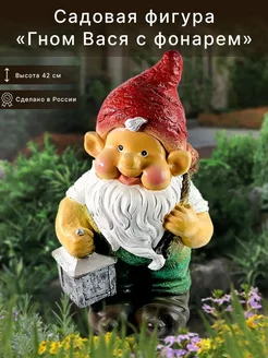 Садовая скульптура "Гном Вася с фонарем", 42см. Полистоун