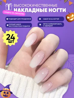 Накладные ногти с дизайном и клеем длинные набор 24 штуки
