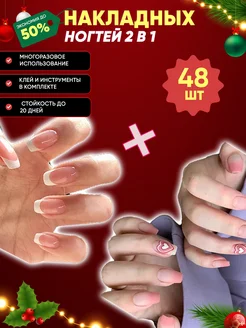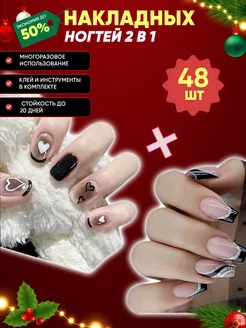 Накладные ногти с дизайном и клеем короткие 2 набора