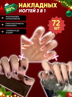 Накладные ногти с дизайном и клеем короткие 3 набора