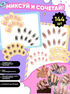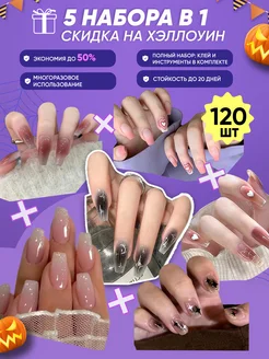 Накладные ногти с дизайном и клеем длинные 6 набора