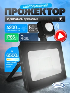 Прожектор светодиодный уличный с датчиком движения 50Вт IP65