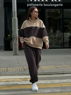 Спортивный костюм в полоску джоггеры и анорак без начеса