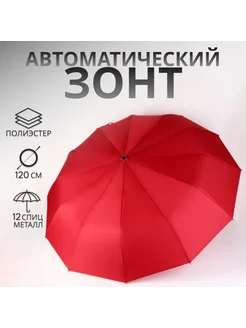 Автоматический зонт, 3 сложения, красный, D 120 см