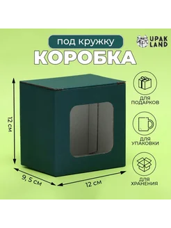 Коробка для кружки с окном изумрудная 12х9.5х12 см, 10 шт