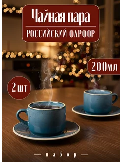 Чайная пара фарфоровая набор посуды кружка и блюдце 2 шт