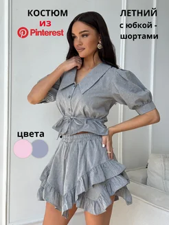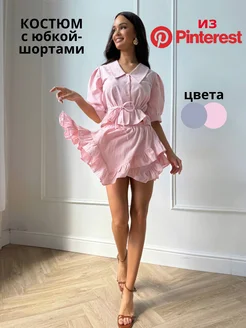 Костюм летний хлопковый двойка с юбкой шортами из pinterest