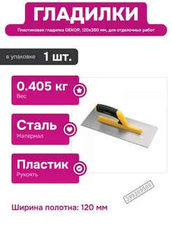 Гладилка DEKOR прямая, 120х350мм пластиковая ручка