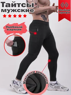 Тайтсы спортивные компрессионные с карманом для тренировок