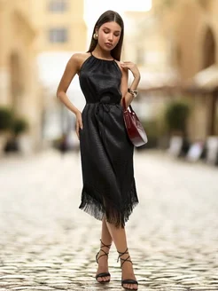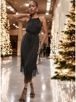 Платье вечернее нарядное праздничное с бахромой