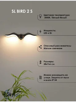 Светильник настенный бра для дома и улицы SL BIRD 2 S B