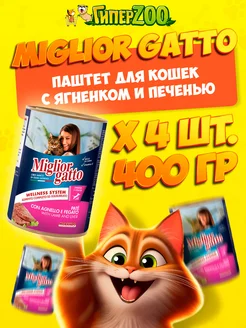 Консервы для кошек с ягнёнком и печенью 4х400гр