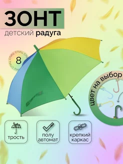 Зонт детский радуга полуавтомат, зонтик трость антиветер