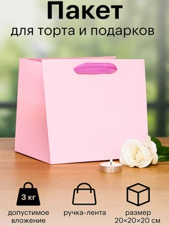 Подарочный пакет для торта и коробок, розовый, 20х20х20 см