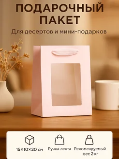 Пакет подарочный розовый, с окном, 15х10х20 см