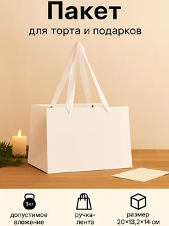 Пакет подарочный с широким дном 20×13.2х14 см, белый