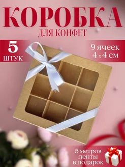 Коробка для конфет с ячейками 9 с разделителем с окном