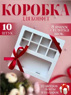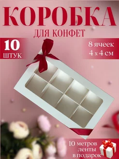Коробка для конфет с ячейками 8 с разделителем с окном белая