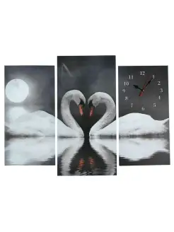 Часы модульные, Животный мир, "Пара лебедей", 60х80 см