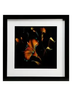 Картина "Яркие цветы на чёрном" 35х35(39х39) см