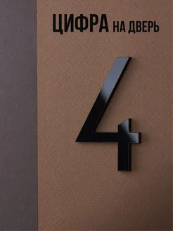 Цифра на дверь квартиры, номер на дверь 4, 6 см, черная