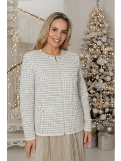 Жакет трикотажный укороченный пиджак приталенный шанель
