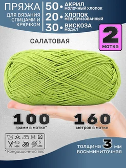 Пряжа Салатовая Хлопок Вискоза Акрил Молочный