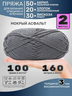 Пряжа Серая Хлопок Вискоза Акрил Молочный