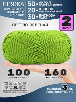 Пряжа Светло Зеленая Хлопок Вискоза Акрил Молочный