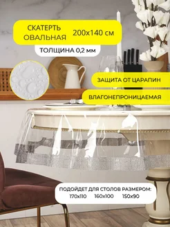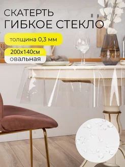 Скатерть гибкое жидкое стекло на стол овальная 200х140 см