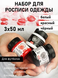 Набор красок для ткани и кожи,3х50мл, Белый-Черный-Красный