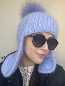 Шапка ушанка ангора вязаная