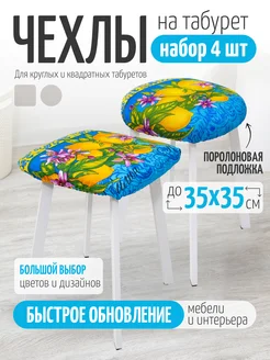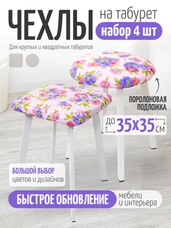 Чехол на круглый и квадратный табурет 4 шт