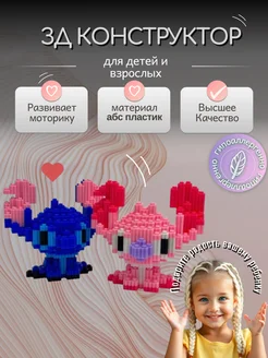 Конструктор 3д из миниблоков набор Стич и Лило пара