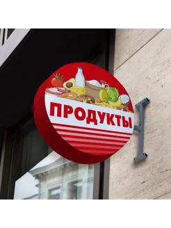 Двухсторонняя торцевая световая вывеска "Продукты"
