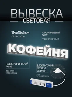 Вывеска световая объемная "Кофейня", диодные буквы на стену